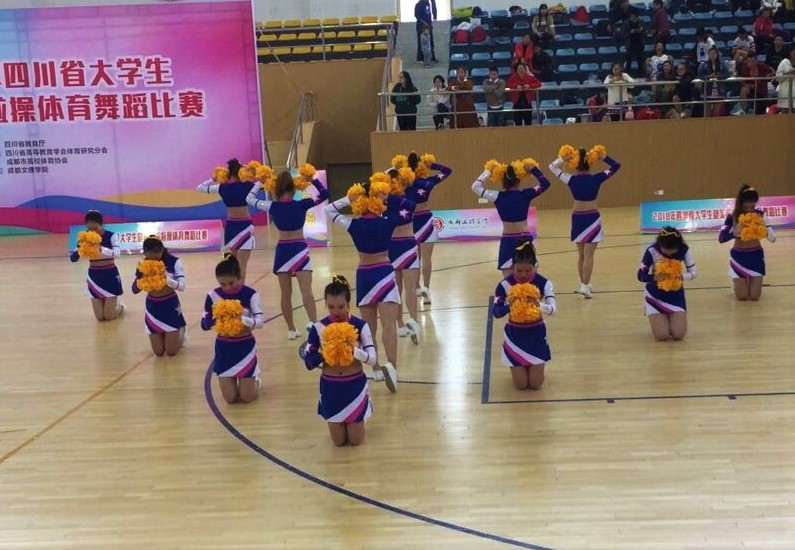 10月19—21日, 由四川省教育厅主办,四川省高等教育学会体育研究分会、成都市高校体育协会协办的2018年四川省大学生健美操啦啦操体育舞蹈比赛在成都文理学院顺利举行。我校62名同学在新葡的京集团35222vip党委书记杨英,教练余明荣、赵亚茹、王燕和王姝燕老师的带领下参与了体育专业组和普通院校组比赛。我校新葡的京集团35222vip杨军教授担任健美操啦啦操比赛副裁判长,余明荣老师担任体育舞蹈比赛裁判。