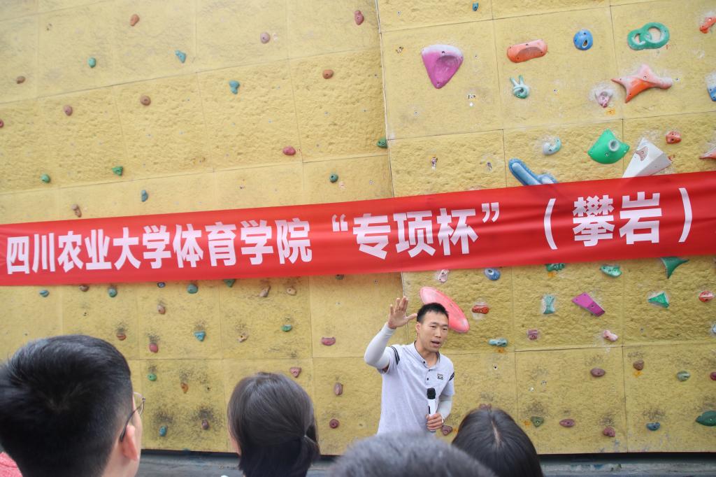 4月12-13日,我院第一届“专项杯”攀岩比赛顺利举行。本次比赛分为直壁攀爬和抱石两个赛道,吸引了三个年级数百名同学的参与。学院院长王建强、副院长刘骞出席开幕式。