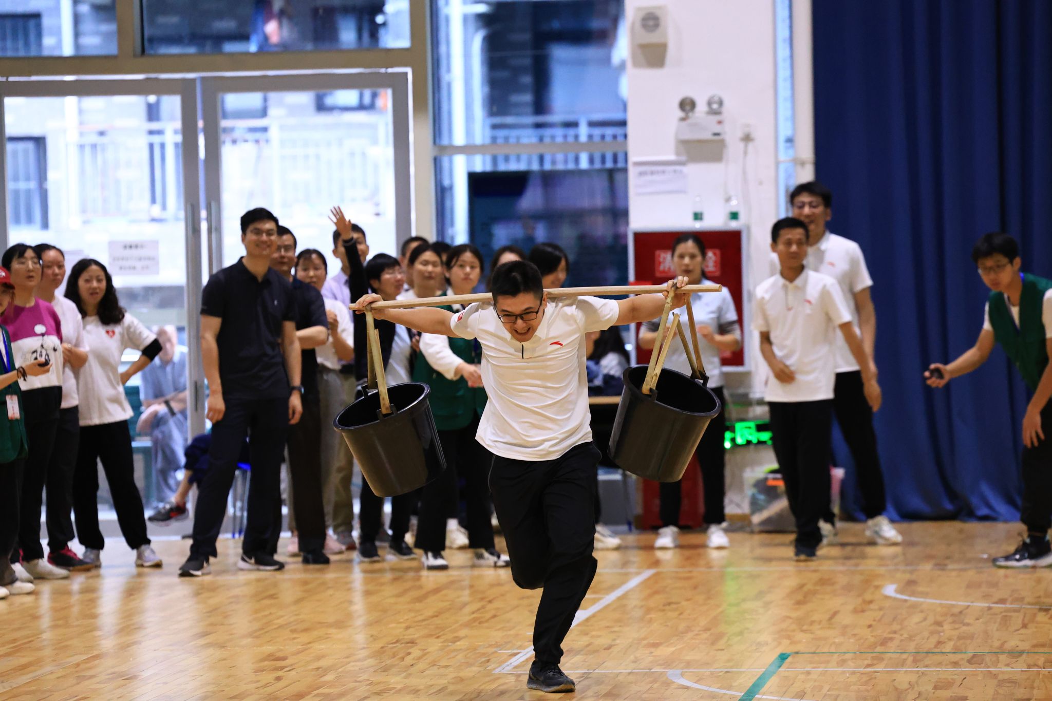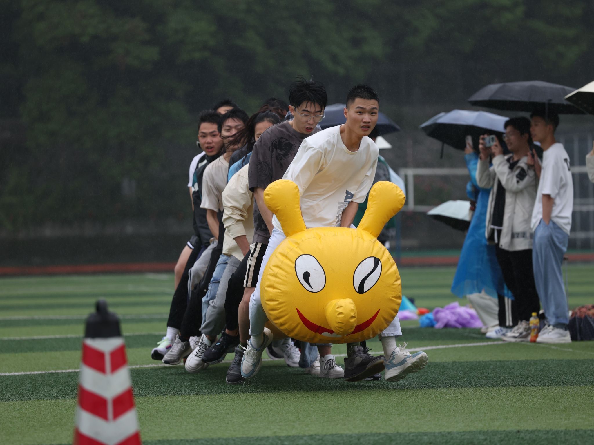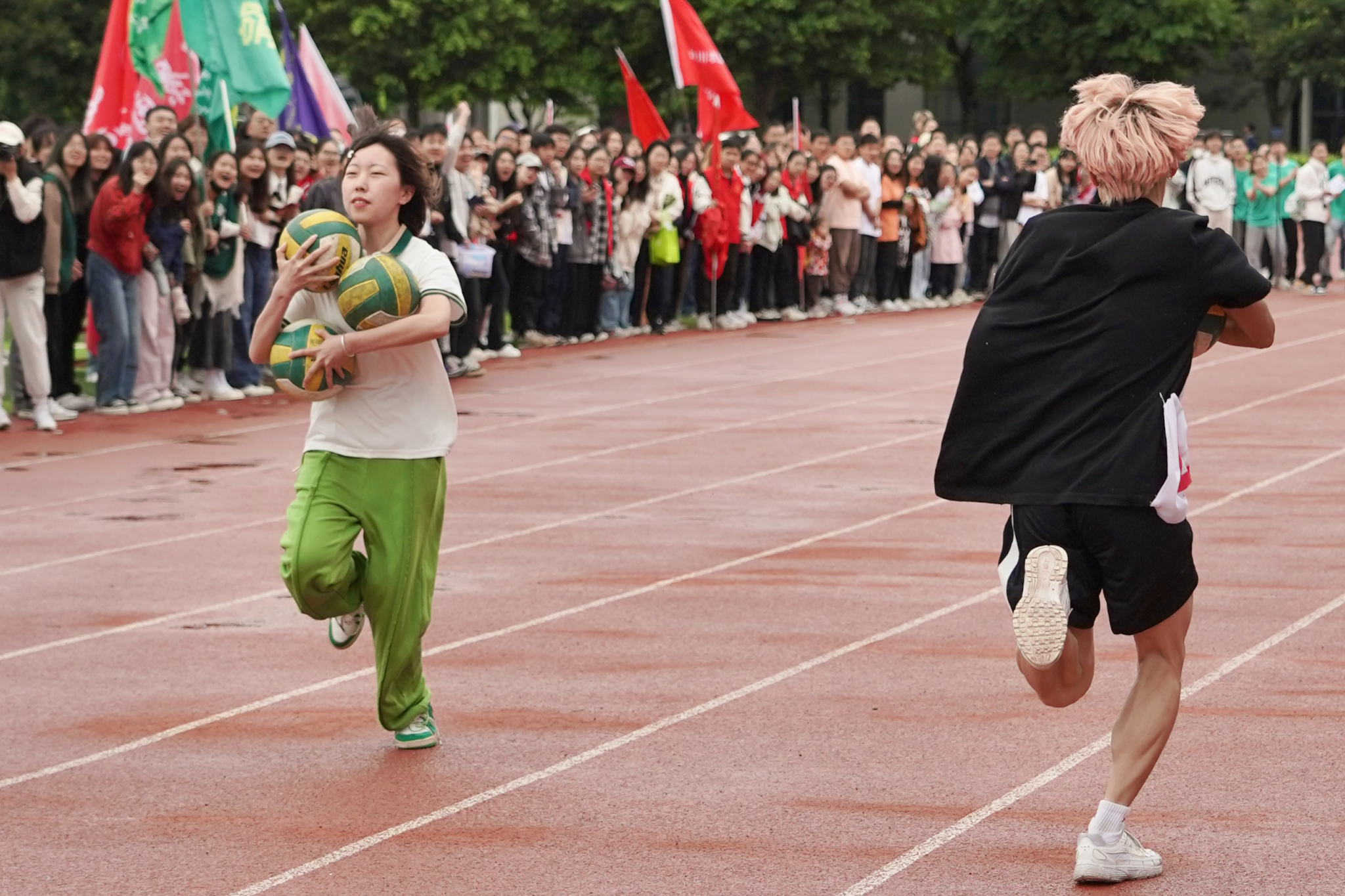 开幕式结束后,校运会正式开始。本届校运会学生组从疫情结束后的实际情况出发,取消了1500米赛跑,其它项目基本与往届一致,共设100m、200m、400m、800m、跳高、铅球、跳远、跳绳、抱球迎面接力等26个竞赛项目,旨在合理地提高学生运动技能和身心健康水平,帮助学生在体育锻炼中享受乐趣、增强体质、健全人格、锤炼意志;教职工趣味运动会则设有挑桶接力、修桥铺路、毛毛虫竞速等六个项目,旨在鼓励广大教职工走出办公室,走向操场,激发教职工的运动热情与团队凝聚力,用更加良好的精神状态去开创我校教学、科研和社会服务等各项工作的新局面。据统计,共有近5000名师生参与其中,还有1000多名师生投入到了运动会的筹备、组织与服务工作。