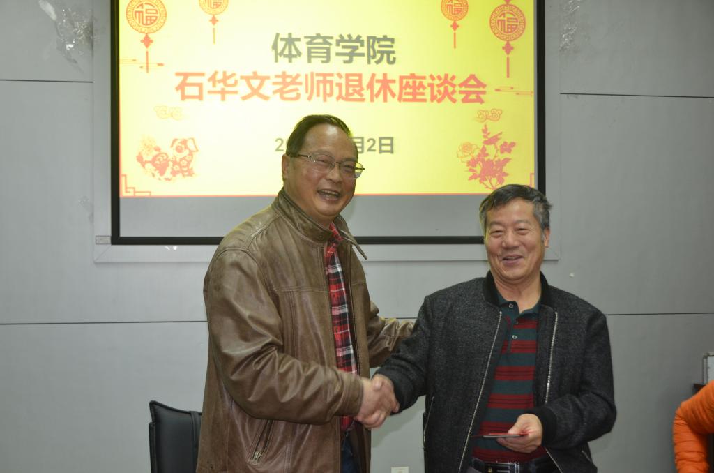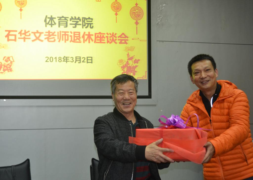 座谈会上,各位领导和老师均对石华文的退休表示不舍。“当年每用一次操场都要挖土,填平,还要用石碾压,这些都要石老师完成”;“他手一甩就可以用石灰画出跑道的线,你们现在谁可以”;“记得我们有一次去成都拉器材回雅安,结果车坏到名山了,又下雨,天也黑了,电筒没电,那感觉哦”在座教师回忆起和石华文工作生活中的点点滴滴,过往画面仿佛在眼前跳动。时光荏苒,才一转眼,曾经的战友就退休了。年轻的老师们表示,石老师在工作中认真负责,无论什么时候只要老师同学有需要,总会准备好器材等着大家;看似简单的工作,石老师付出所有的精力去完成,也将这个工作做到极致。邓跃宁表示,石华文老师1975年就到川农参加工作,几十年工作勤勤恳恳,为学院建设做出了巨大贡献,祝愿他在退休后身体健康,万事如意。