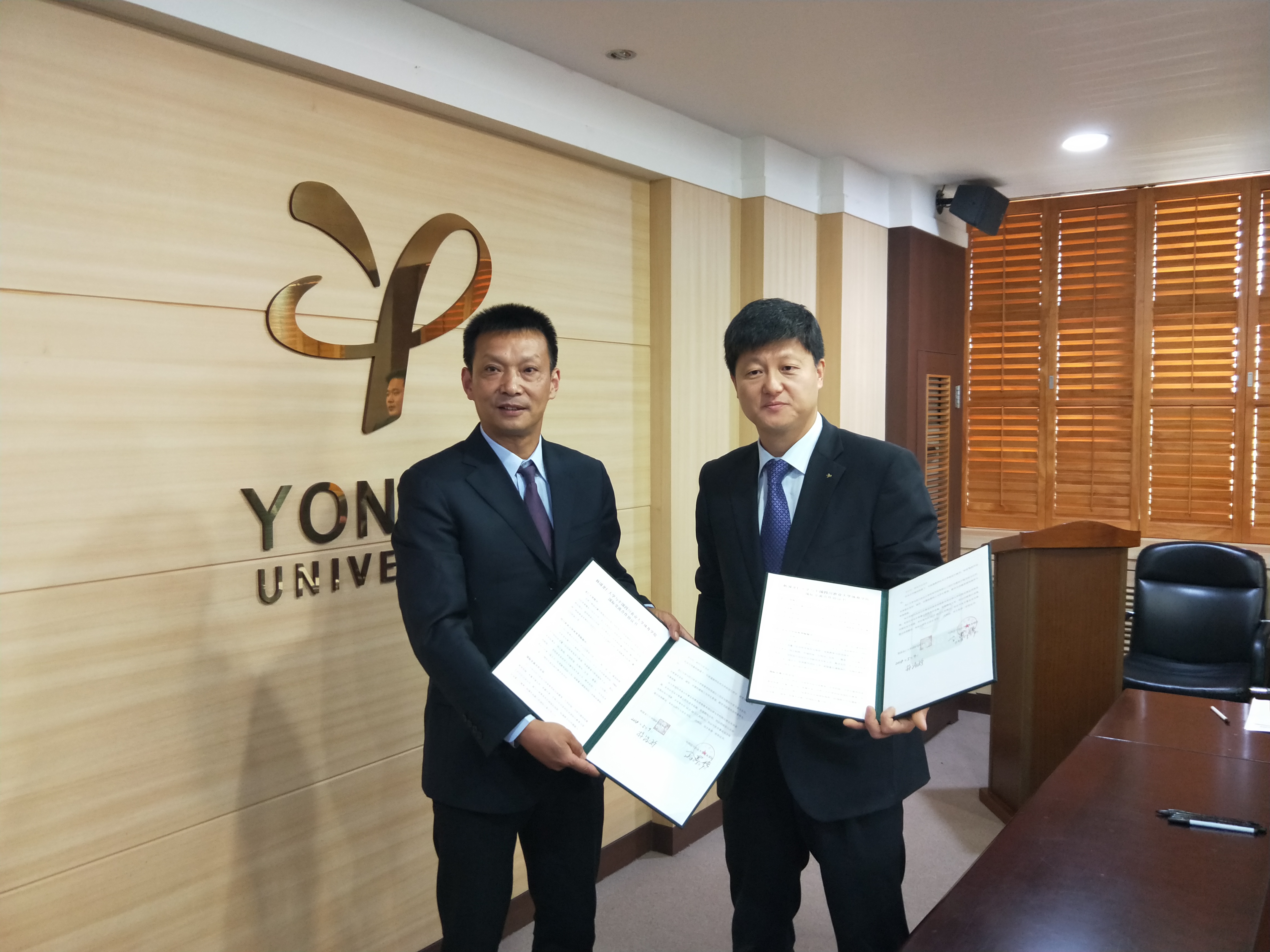 据悉,韩国龙仁大学是一所以体育为主的综合性大学,是世界上最早建立跆拳道系的高等学府,被誉为世界上最好的武道大学。此次新葡的京集团35222vip与龙仁大学的跨国合作从2017年3月签署战略合作备忘录,至今正式签订协议,历时1年零2个月,旨在通过国际交流合作的形式,致力于为学生搭建具备厚重文化底蕴、丰富专业知识的国际化平台,实现“互利共赢”。