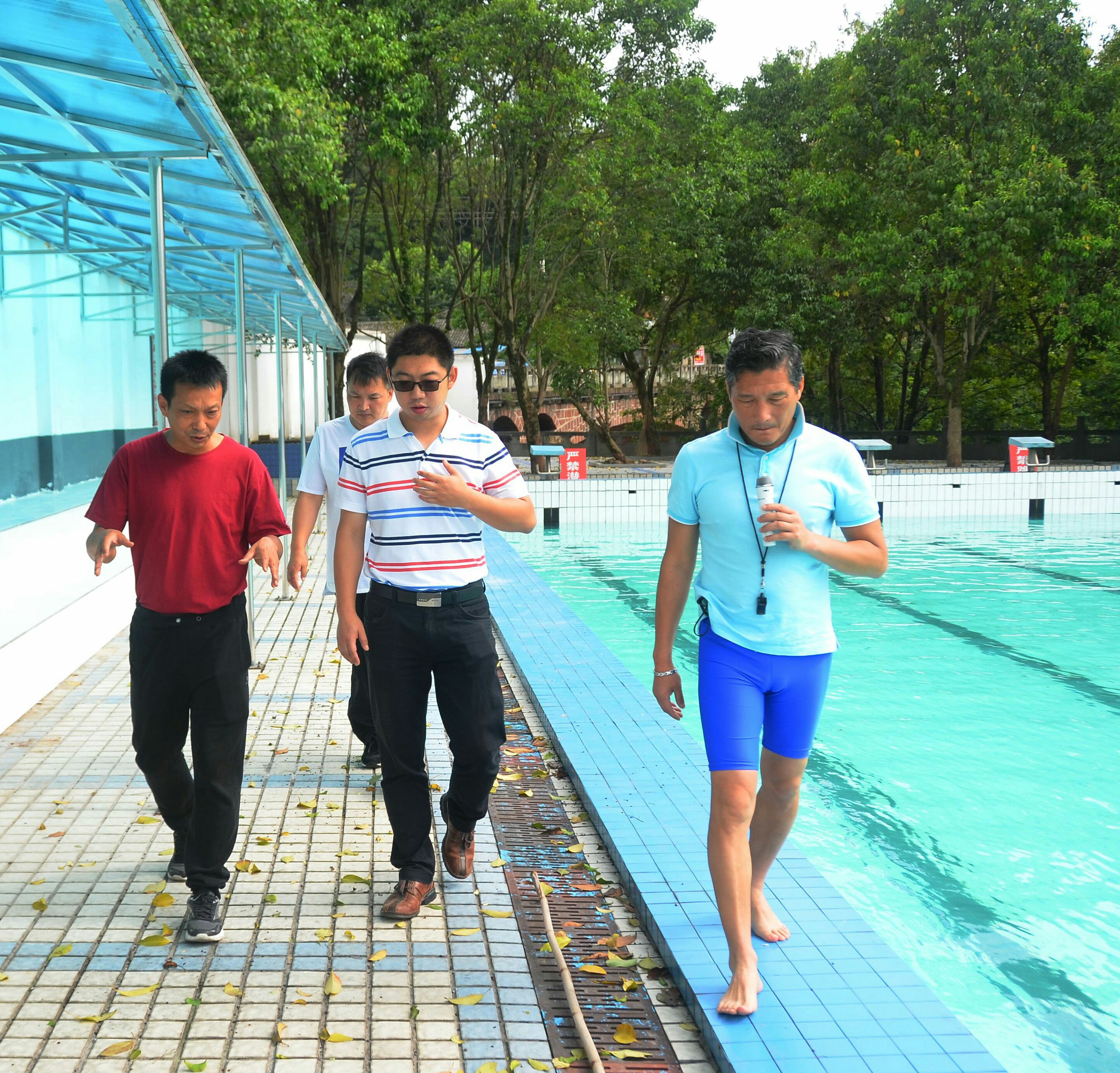 检查中,王建强指出,安全是体育教学首要的考虑因素。游泳运动作为体育教学的高危项目,各位老师更应引起高度重视,大家各司其职,从整体上树立安全意识,在细节上做好安全工作。赵枢将游泳池安全工作准备的相关事项与各领导及老师进行了说明。王晖从教学角度出发,为游泳池安全工作提出了宝贵意见。