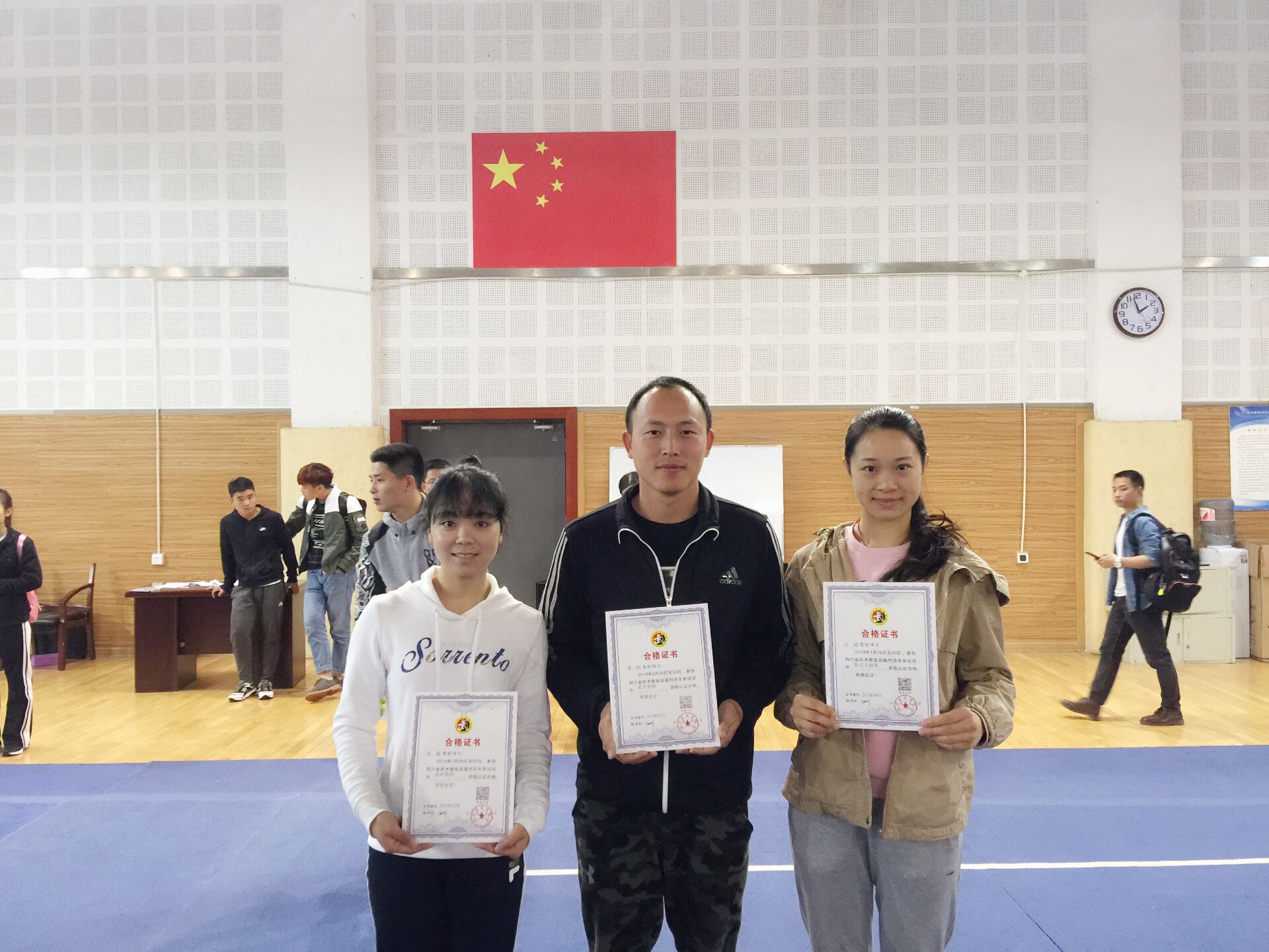 通过培训,李煦表示再次明确了武术套路属于难、美类项群。武术不但包含了套路演练还有技击格斗、养生健身和传承传统文化等系列内容。我院三名学员在学习过程中努力、认真,表现优秀,获得了武术套路、陈氏太极拳教练员裁判员合格证书,实现了“学有所获、学有所思、学有所为”的培训目的。