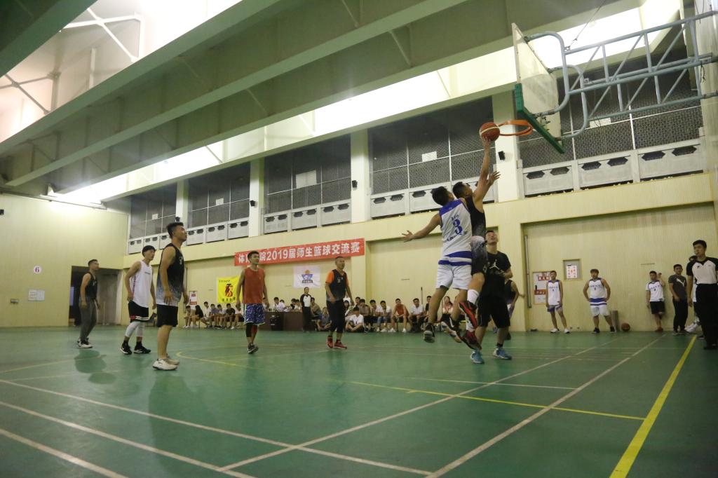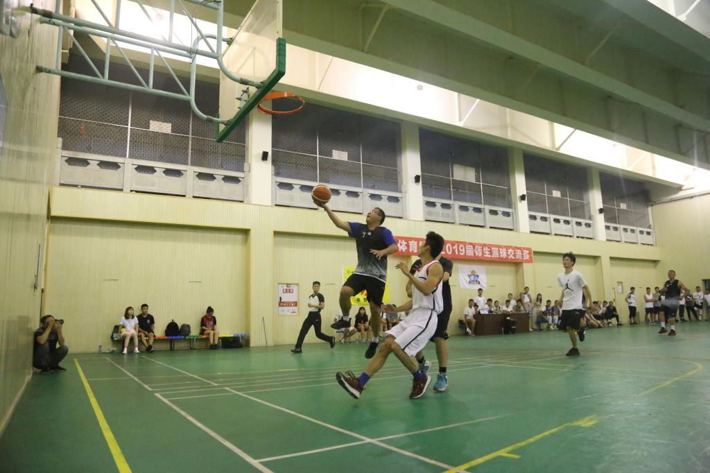 比赛激烈而胶着,教师队一直保持领先的优势。在最后2分钟,赛况有了极大变化。毕业生队伍多次三分命中,点燃了队伍和观众的热情,比分迅速反超。教师队亦不甘示弱,李凯峰老师凭借过硬的技术和身体条件,连续三分,抢板,扣杀,将比分锁定在53:52。此时,时间还剩3秒,毕业生队伍发球。发球、抢断,发球、抢断,老师和同学们纷纷笑到:“最后三秒,打成NBA去了!”