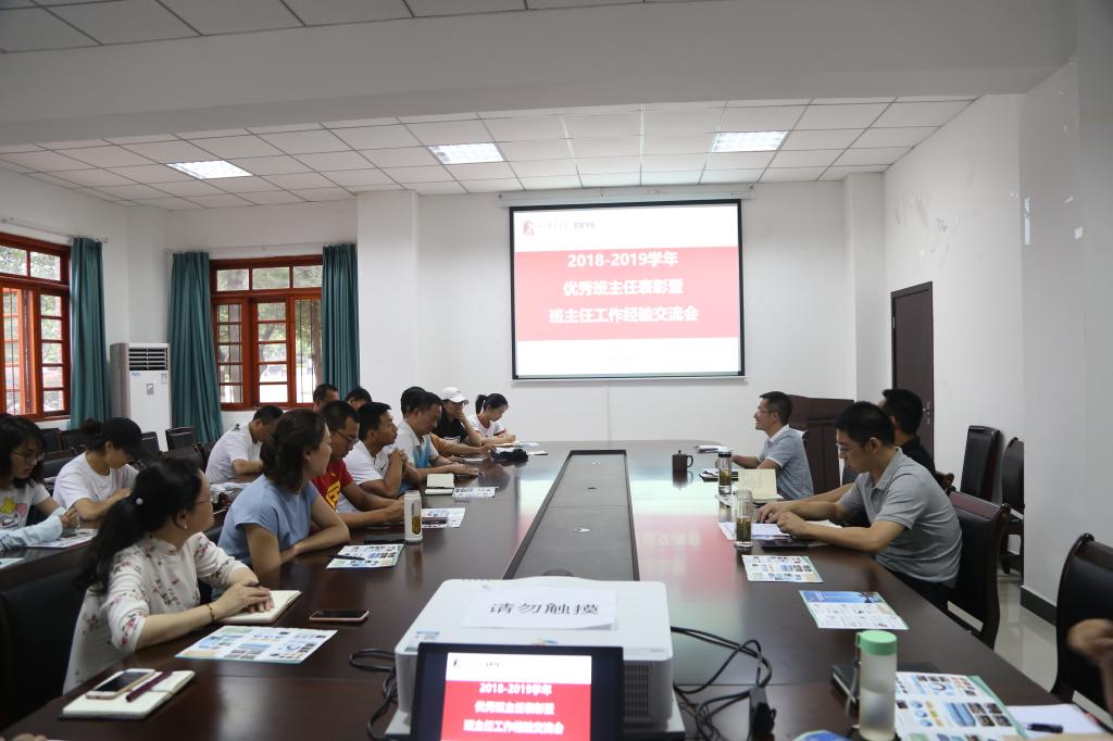 刘骞宣读了《新葡的京集团35222vip关于表彰2018-2019学年度“优秀班主任”的决定》。学院领导为优秀班主任们进行了颁奖。翟亮老师和连虎虎老师分别对班主任工作进行了经验交流。翟亮从学业学分、班级凝聚力、评优评奖、班干部培养以及毕业生工作等方面进行了交流。连虎虎用“三心”总结自己近十年的班主任工作,即爱心、耐心、责任心。要真心实意为学生着想,多与同学们交流。