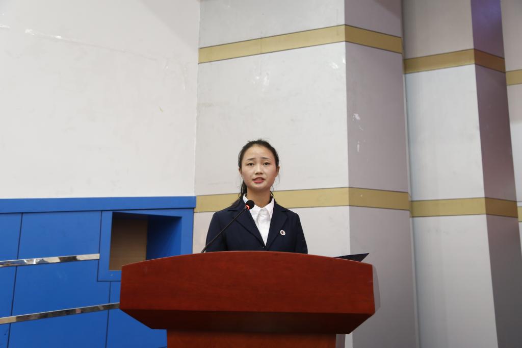 学生会副主席、国家励志奖学金获得者万学丽作为高年级学生代表向新同学们表示诚挚的问候与热烈的欢迎。两年前的她和新生一样懵懂未知,两年的磨砺让她有勇气和底力去挑战更多。她希望新同学们能在新葡的京集团35222vip这个朝气蓬勃、团结友爱的大家庭里不忘初心,敢于尝试,铭记感恩,用积极进取为青春涂上奋斗的底色,留下充实、温暖、持久、无悔的青春回忆。