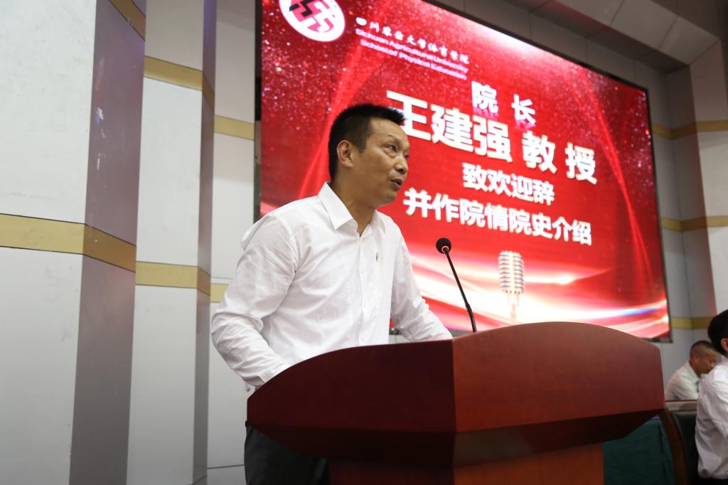 王建强讲述了新葡的京集团35222vip60余年的办学历程以及学院历年获得的荣誉与成就,并向大家讲解我院精神。他也向同学们提出了三点要求:第一、转变角色,尽快适应大学生活;第二、多读书,做有文化的体育人;第三,珍惜宝贵的室友情,用心经营和维护好室友之间的感情。