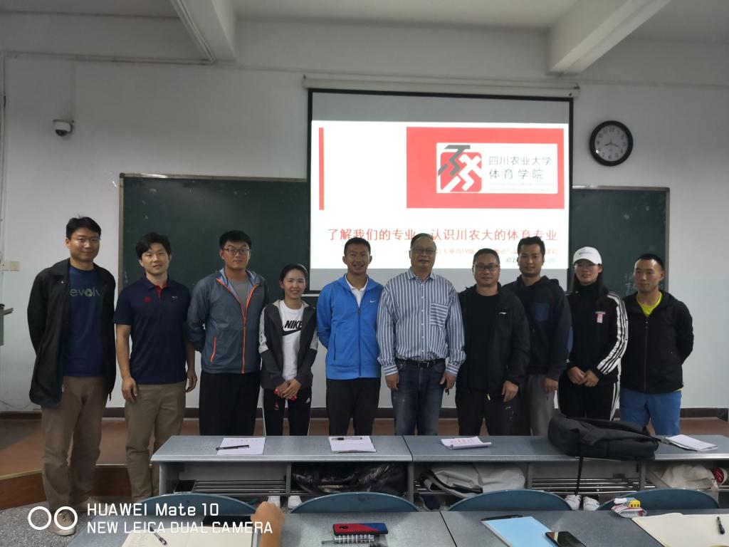 作为四川省高教学会体育研究分会理事长,邓跃宁教授对省内外休闲体育专业发展认识全面,面对全体2019级休闲体育系新生,邓教授从我国休闲体育专业的设立及发展现状和行业的未来前景对学生做了详细介绍和分析,对国家当前的相关行业政策及人才需求做了解读,让刚进校还未对本专业有深入了解的新生对专业未来有了信心。邓教授又从川农大体育专业的建设发展,三个专业各自的特色和差别,休体系的场地设备师资力量等全方位介绍了川农的休体,让学生对川农大的体育树立自信。在本节课的最后,邓教授对川农大新葡的京集团35222vip院训、学院精神、学院院徽做了解读,并由此也对学生提出了殷切希望和美好祝福,希望同学们在今后能够做一个有文化、有内涵、有品味、有抱负的体育人!