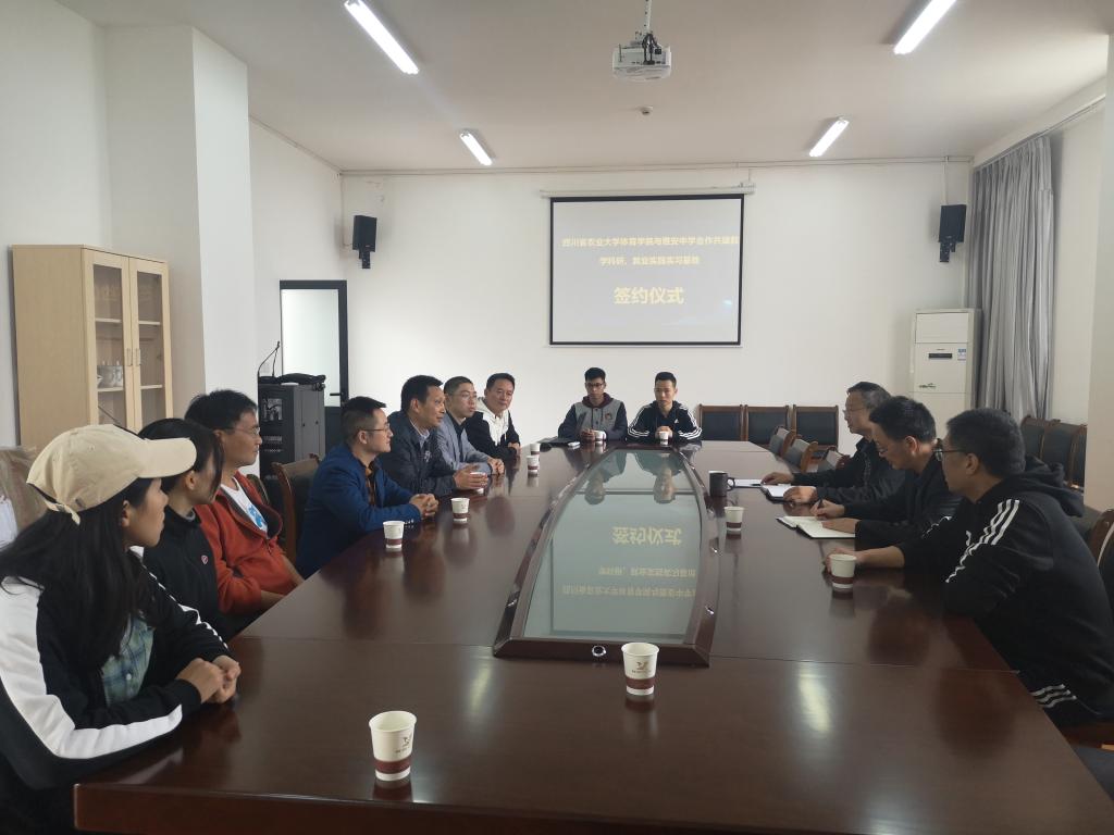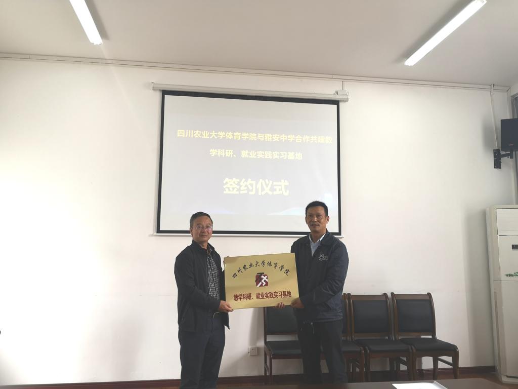 10月15日上午,新葡的京集团35222vip院长王建强、副院长刘骞、党委副书记何勇、公共体育部主任杨军、体育教育系主任牛鹏飞等一行7人前往雅安中学举行教学科研就业实践实习基地签约仪式并授牌。